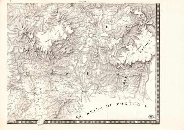 | Keywords: Carta geométrica de Galicia 12 Monterey.jpg es <center> CARTA GEOMETRICA<br /> <big>D E G A L I C I A</big><br /> Dividida en sus Provincias<br /> de Coruña Lugo Orense Pontevedra; y subdividida en Partidos y Ayuntamientos <br /> PRESENTADA<br /> <small>EN 1834</small><br /> A S M LA REINA GOBERNADORA<br /> <big>Doña Maria Cristina de Borbon</big><br /> por su Secretario de Estado y del despacho de lo Interior<br /> <small>LEVANTADA Y CONSTRUIDA</small><br /> <small>EN LA ESCALA</small><br /> <small>DEL CIENMILESIMO</small><br /> POR EL D<sup>R</sup> D DOMINGO FONTAN <br /> Director del Observatorio Astronomico de Madrid Diputado á Cortes <br /> Individuo de la Academia de la Historia y de la Sociedad de Geografia de Paris <br /> <small>Ex-profesor de Matematicas sublimes y de Mecanica industrial en la Ciudad de Santiago </small><br /> <big>Grabada bajo la dirección del Autor</big><br /> en 1845<br /> POR L BOUFFARD<br /> <small>No se grabó la división de los Partidos y Ayuntamientos</small><br /> <small>en razon de su interinidad </small><br /> </center> 1845 http //bibliotecadigital rah es/dgbrah/es/consulta/registro cmd id 15909 Real Academia de la Historia Domingo Fontán 1788-1866 other versions PD-old-70-1923 Carta geométrica de Galicia 1845 |