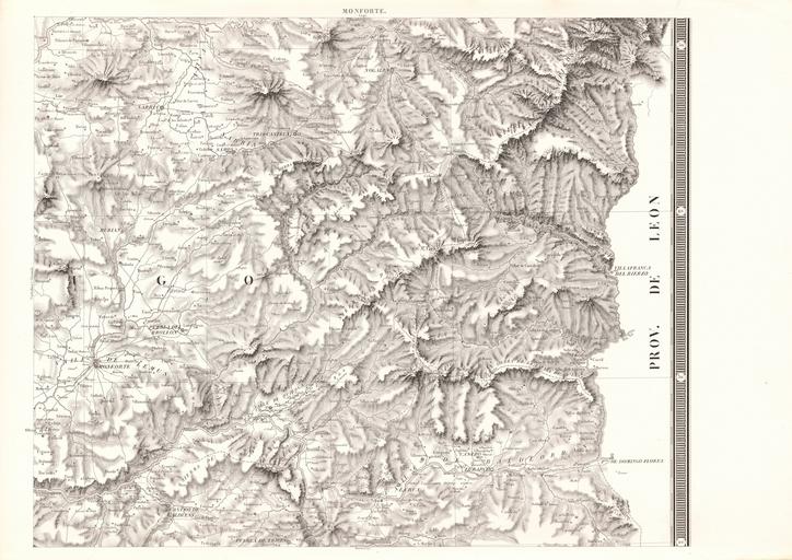 Keywords: Carta geométrica de Galicia 09 Monforte.jpg es <center> CARTA GEOMETRICA<br /> <big>D E   G A L I C I A</big><br /> Dividida en sus Provincias<br /> de Coruña Lugo Orense Pontevedra; y subdividida en Partidos y Ayuntamientos <br /> PRESENTADA<br /> <small>EN 1834</small><br /> A S M LA REINA GOBERNADORA<br /> <big>Doña Maria Cristina de Borbon</big><br /> por su Secretario de Estado y del despacho de lo Interior<br /> <small>LEVANTADA Y CONSTRUIDA</small><br /> <small>EN LA ESCALA</small><br /> <small>DEL CIENMILESIMO</small><br /> POR EL D<sup>R</sup> D DOMINGO FONTAN <br /> Director del Observatorio Astronomico de Madrid Diputado á Cortes <br /> Individuo de la Academia de la Historia y de la Sociedad de Geografia de Paris <br /> <small>Ex-profesor de Matematicas sublimes y de Mecanica industrial en la Ciudad de Santiago </small><br /> <big>Grabada bajo la dirección del Autor</big><br /> en 1845<br /> POR L BOUFFARD<br /> <small>No se grabó la división de los Partidos y Ayuntamientos</small><br /> <small>en razon de su interinidad </small><br /> </center> 1845 http //bibliotecadigital rah es/dgbrah/es/consulta/registro cmd id 15909 Real Academia de la Historia Domingo Fontán 1788-1866 other versions PD-old-70-1923 Carta geométrica de Galicia 1845
