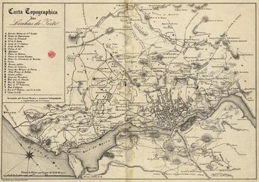| Keywords: Carta topografica das Linhas do Porto.jpg en Topographic map of Linhas do Porto Siege of Porto Liberal Wars pt Carta topografica das Linhas do Porto durante o Cerco do Porto Guerra Civil Portuguesa Guerras Liberais <br/>ESCALA Escala ca 1 25400 Palmo por légua de 2540 Braças portuguesas 8 6 cm <br/>PUBLICAÇÃO Lisboa Lith de A C Lemos 1835 <br/>DESCR FÍSICA 1 mapa litografia p b ; 29 50x42 80 cm em folha de 39 00x48 40 cm <br/>NOTAS Contém ainda escala gráfica de 1000 braças e encontra-se orientada a Nor-Nordeste Actualização de original anteriormente elaborado ver mapa com a cota PTBNP C C 810 V segundo dados aí inclusos em ca de 1834 Data provável atribuída segundo os antecedentes editoriais e o período de actividade de A C Lemos cf Ernesto Soares - Dicionário de iconografia v 3 índice de artistas O mapa apresenta linhas ponteadas identificando as posições militares assim como a localização de baterias e fortes e a indicação de datas de confrontos militares Biblioteca Nacional de Portugal http //purl pt/1388 1835 Lemos A C fl ca 1833-1843; Moreira Francisco Pedro de Arbués 1777-1843 ant bibliog Institution Institution Biblioteca Nacional de Portugal Accession number Cota C C 117 V PD-old-100 1843 Cartography in the BNP Portuguese Civil War Old maps of Porto 1835 maps Files uploaded by User JotaCartas Porto in the 19th century |