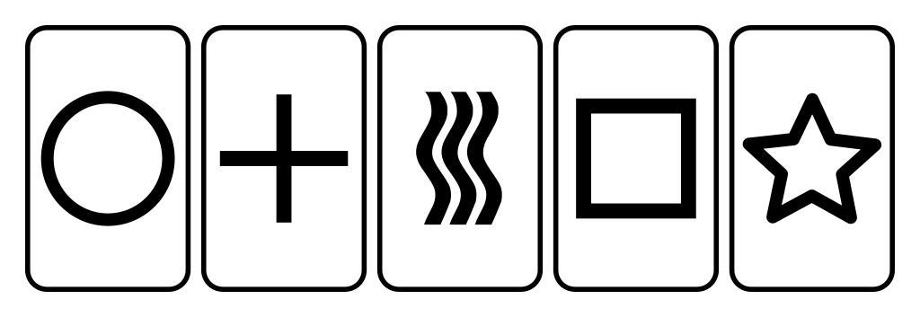 Keywords: Cartas Zener.svg Vector drawing of the five kinds of Zener cards Ordered by number of lines and curves Dibujo vectorizado de los 5 palos de las cartas Zener Ordenados por número de líneas y curvas see below Color 100px Created with Inkscape Zener cards 00 13 4 November 2012 UTC Cartas Zener svg Cards Pseudoscience Parapsychology Valued images by King of Hearts |