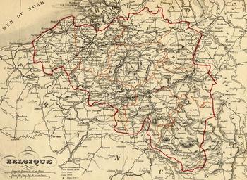 | Keywords: Carte Belgique 1843.jpg Carte géographique ancienne de Belgique wp-FR avec noms en français dressée par le géographe Alexandre Vuillemin en 1843 extraite de son Atlas universel de géographie ancienne et moderne à l'usage des pensionnats Le titre original de cette carte est Belgique Sur cette carte de 1843 la rectification de frontière de 1839 donnant le Limbourg oriental et Maastricht aux Pays Bas est intégrée Par contre les Cantons de l'Est Eupen Malmedy Saint Vith ajoutés à la Belgique à la fin de la première guerre mondiale sont en dehors de la frontière du royaume belge d'alors Cet atlas était initialement monochrome mais son premier propriétaire a réhaussé manuellement en couleur les frontières ou limites administratives Map of Belgium wp-EN with french names made by Alexandre Vuillemin in 1843 extracted from his Atlas universel de géographie ancienne et moderne à l'usage des pensionnats Karte des Königreichs de Belgien von 1843 mit Bezeichnungen in französischer Sprach auch im flämischen Landesteil erstellt durch den französischen Geographen Alexandre Vuillemin für seinen Atlas universel de géographie ancienne et moderne à l'usage des pensionnats Allgemeiner Atlas der historischen und modernen Geographie für die Nutzung in Pensionaten <br /> Die Karte zeigt die belgischen grenzen nach Abtretung des östlichen Limburg u a Maastricht an die Niederlande Die belgische Ostgrenze entspricht nicht der heutigen da Belgien nach dem Ersten Weltkrieg deutsches Territorium Ostbelgien annektierte <br /> Die Karte war ursprünglich einfarbig ihr/e erste/r Besitzer/in zog die belgischen Außen- und Provinzgrenzen mit farbigem Buntstift nach http //www kelibia fr/histoirepostale/x_azdivers htm cartes géographiques anciennes du site histoirepostale net http //www kelibia fr/histoirepostale/x_azdivers htm old maps from histoirepostale net website 1843 Alexandre Vuillemin reproduit par http //histoirepostale net histoirepostale net PD-old Maps by Alexandre Vuillemin Old maps of Belgium |