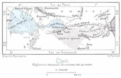 | Keywords: Carte chotts roudaire.jpg Carte des chotts relevée par Roudaire dans le cadre du projet de la mer intérieure Collection personnelle Bertrand Bouret http //profburp com PD-Tunisia Old maps of Tunisia Chott Melrhir Chott el Gharsa Chott el Djerid François Élie Roudaire |
