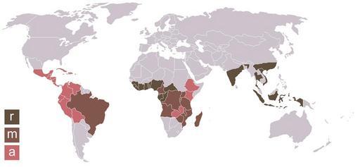 | Keywords: Carte Coffea robusta arabica 2.png Distribución geográfica de los diferentes cultivos r robusta a arabica m robusta y arabica Map of production of coffee r culture Coffea robusta m culture Coffea robusta Coffea arabica a culture Coffea arabica 2005-03-25 own assumed Pixeltoo Coffee maps |