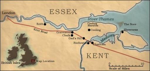 | Keywords: Carte G. E.jpeg en Map of Pip's whereabouts in Great Expectations 2012-07-30 http //charlesdickenspage com/expectations html author PD-Art Charles Dickens Great Expectations Uploaded with UploadWizard ImageNote 1 5 334 72 21 750 356 2 Rochester - Le village de Pip est situé à proximité de la ville Chalk - Ici pendant sa lune de miel en 1836 Dickens a trouvé le modèle de la forge de Joe Gargery Cooling - Dans le cimetière de Cooling est enterrée la famille de Pip C'est là qu'il rencontre Magwitch Chatham - Ville où Dickens a vécu enfant Gad's Hill - Résidence de Dickens achetée en 1856 Kent Road - Itinéraire que prend Pip pour se rendre à Londres et en revenir Thames - Pip s'entraîne à l'aviron entre Londres et Erith Il essaie de s'enfuir de Londres avec Magwitch pour gagner les abords des marais de Cooling The Nore - Banc de sable au large de l'Île de Grain ImageNoteEnd 1 |