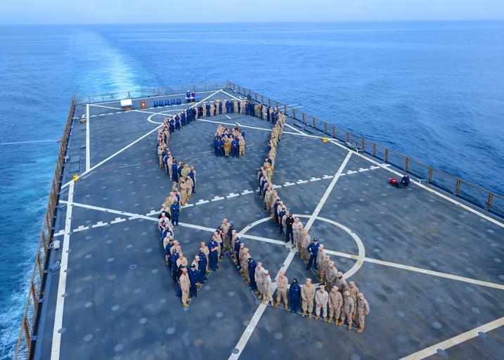| Keywords: Carter Hall walks for Sexual Assault Awareness Month 130328-N-XZ031-049.jpg en Sailors and Marines form a ribbon in support of Sexual Assault Awareness Month aboard the amphibious dock landing ship USS Carter Hall LSD 50 Carter Hall is deployed as part of the Kearsarge Amphibious Ready Group with embarked Marines from the 26th MEU which is on a scheduled deployment in support of maritime security operations and theater security cooperation efforts in the 6th Fleet area of responsibility AOR U S Navy photo by Mass Communication Specialist 3rd Class Chelsea Mandello/Released 2013-03-28 Petty Officer 3rd Class Chelsea Mandello https //www dvidshub net/image/899449 130328-N-XZ031-049 2013-04-02 20 12 NORFOLK VA US PD-USGov-Military-Navy Sexual Assault Awareness Month USS Carter Hall LSD-50 Images from DoD uploaded by Fæ |