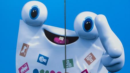Keywords: cartoon figure advertisement megastore toy store