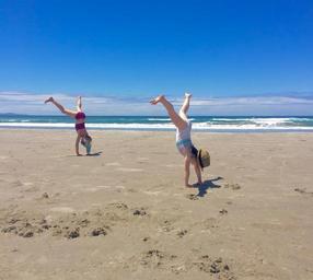 Keywords: cartwheel fun beach summer active happiness sand joy new zealand mount maunganui