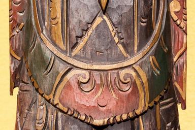 Keywords: carving ornaments temple guardian bali wood painted carved wood carving red green gold art artwork statue