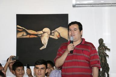 Keywords: people Participante hace una pregunta sobre el arte. Participante hace una pregunta sobre el arte.