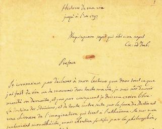 | Keywords: Casanova Histoire manuscript.jpg en First page of the original manuscript Giacomo Casanova Histoire de ma vie 1797 http //gallica bnf fr/ark /12148/btv1b6000810t/f11 image Giacomo Casanova other versions PD-old-100-1923 Uploaded with UploadWizard Histoire de ma vie |