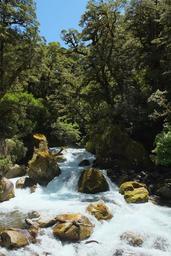 Keywords: Cascade on Marian Creek.jpg Cascade on Marian Creek Own 2016-01-10 Pseudopanax wikipedia en 44 48 18 4 S 168 6 4 9 E Lake Marian Falls