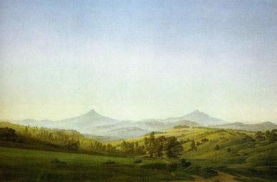 | Keywords: Caspar David Friedrich 048.jpg Artwork Creator Caspar David Friedrich Česká krajina s Milešovkou Böhmische Landschaft mit dem Milleschauer Bohemian Landscape with Mount Milešovka 1809 oil canvas cm 71 104 Institution Galerie Neue Meister Dresden Dresden accession number 2197 E object history credit line own user Augiasstallputzer PD-old-100 DEFAULTSORT Caspar David Friedrich Bohmische Landschaft mit dem Milleschauer 1800s paintings by Caspar David Friedrich 1809 Paintings by Caspar David Friedrich in the Galerie Neue Meister Dresden Landscape paintings of the Czech Republic Milešovka |