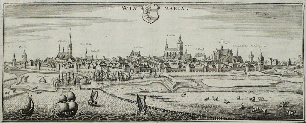| Keywords: Caspar Merian - Wismaria.jpg Artwork Creator Caspar Merian Wismar - Gesamtansicht Historische Ortsansicht 1653 copper engraving etching cm 14 0 36 2 object history credit line Aus Matthäus Merian d Ä Topographia Saxoniae Inferioris das ist Beschreibung der vornehmsten Stätte und Plätz in dem hochl Nider Sachß Crayß Frankfurt am Main Merian 1653 accession number http //www grafikliebhaber de/Wismar-_Gesamtansicht-_Merian-Wismaria/topic/Shop_Detailseite/shop_art_id/85699/tpl/koenitz_detail grafikliebhaber de PD-old-100 Maps of Wismar Old maps of Mecklenburg-Vorpommern Caspar Merian Wismar in art Wismar in the 17th century |