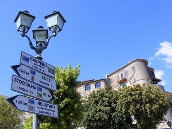 Keywords: casperia italy signs directions sky clouds buildings lamp post trees nature outside