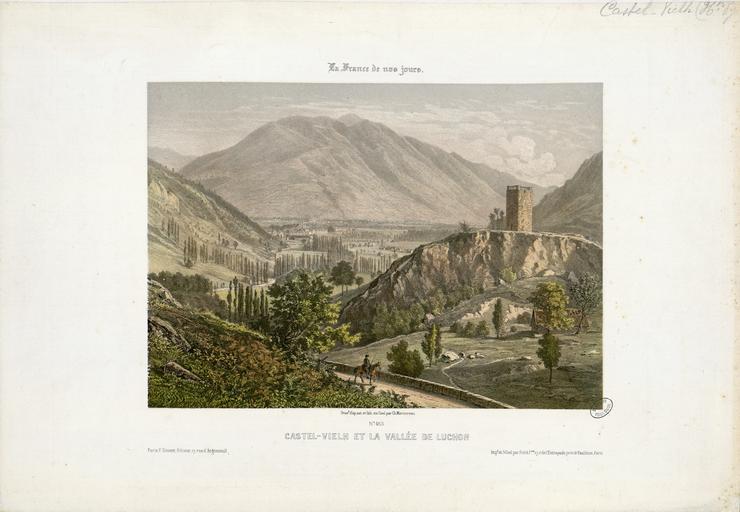 | Keywords: Castel-Vielh et la Vallée de Luchon - Fonds Ancely - B315556101 A MERCEREAU 1 012.jpg Impression en 3 coul par Frick frères à Paris Les recueils de lithographies de Mercereau sont composés de lithographies provenant de La France de nos jours vaste suite publiée par livraisons de 1853 à 1876 et comprenant 475 planches en deux tirages l'un à deux teintes noir et bistre l'autre en couleurs Les libraires ont réuni ces planches en albums de composition variable quant au nombre de planches et aux dessinateurs Asselineau Mercereau Maurice Deroy etc Un titre Les Pyrénées par Ch Mercereau; Bagnères-de-Luchon par Ch Mercereau était frappé sur le plat supérieur de la reliure de l'album ainsi que le nom du Libraire pour lequel il était réalisé La plupart des recueils de ces planches pyrénéennes portent le nom de Sajous libraire à Bagnères-de-Luchon; l'album le plus complet que nous ayons vu comprend 48 lithographies de Mercereau Peu commun Les pl 1 à 20 sont numérotées de 442 à 461 La pl 21 en camaïeux est numérotée 468 elle est dessinée d'après nature et lithographiée par Deroy La pl 22 ne porte aucune indication excepté le tampon Hommage du propriétaire Aimé Géruzet - Bagnères de Bigorre Ancely René 1876 - 1966 Possesseur fre public domain domaine public B315556101_A_MERCEREAU_1_012 jpg image/jpeg 1 f de pl lith en coul ; 29 cm oblong Frick frères Imprimeur Sinnett 17 -18 ; éditeur Éditeur http //numerique bibliotheque toulouse fr/collect/general/index/assoc//ark /74899/B315556101_A_MERCEREAU_1_012 dir/B315556101_A_MERCEREAU_1_012 jpg Bibliothèque municipale de Toulouse A-MERCEREAU 1-12 Creator Charles Mercereau http //catalogues toulouse fr/web2/tramp2 exe/do_keyword_search/log_in setting_key BMT1 servers 1home query p001494 Bagnères de Luchon - Vue de l'établissement thermal et du parc prise au dessus de la buvette Bagnères de Luchon entrée de l'avenue d'Etigny Cascade Richard - Vallée du Lys St Bertrand de Comminges - Maison de Pierre Bridaul en 1440 Haute Garonne Fond de la Vallé du Lys Cascade d'Enfer - Vallée du Lys Gouffre infernal - Vallée du Lys Cascade du Coeur - Vallée du Lys Lac et Cascade d'Oo i e Oô près Luchon Haute Garonne Eglise d'Oo i e Oô et glacier de la vallée Bagnères-de-Luchon l'établissement thermal et la buvette Chemin du Port de Vénasque - Vue prise au-dessus de l'Hospice Port de Vénasque - Vue prise au-dessus des cinq lacs Cascade des Demoiselles Vallée de l'Hospice-Luchon Cascade des Parisiens - Vallée de l'Hospice Haute-Garonne Cascade de Juzet près Bagnères-de-Luchon Haute-Garonne St Béat Haute Garonne St Béat - Vue de la Chapelle Notre-Dame du Château Haute Garonne St Bertrand de Comminges Haute-Garonne Laval - Vue générale prise du Viaduc Sans titre Chalet vignette http //numerique bibliotheque toulouse fr/collect/general/index/assoc//ark /74899/B315556101_A_MERCEREAU_1_012 dir/B315556101_A_MERCEREAU_1_012_thumb jpeg between 1853 1876 Castel-Vielh et la Vallée de Luchon B315556101_A_MERCEREAU_1_012 lithography - print - colors - color lithograph Bagnères-de-Luchon in art Tour de Castelvielh Bagnères-de-Luchon Vallée de Luchon Towers in art Roads in art Valleys in art Mountains in art Charles Mercereau Horsemen in art |