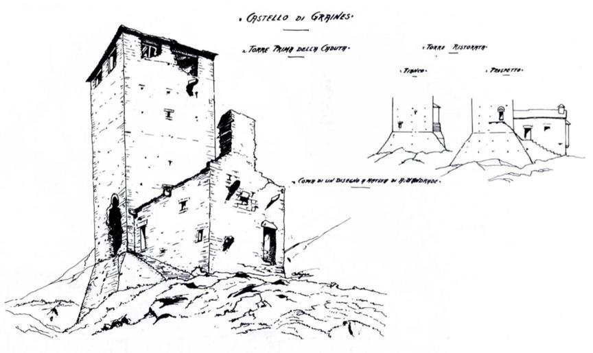 | Keywords: Castello di Graines torre prima della caduta fig 32 e torre ristorata fig 33.tiff Alfredo D'Andrade 1839-1915 fatta da Carlo Nigra 1856-1942 NdE La fotografia n 33 Il fabbricato accanto al donjon del Castello di Graines mancava nella documentazione allestita dall'autore รจ tratta dal nostro archivio before 1942 Carlo Nigra Torri e castelli e case forti del Piemonte dal 1000 al secolo XVI La Valle d'Aosta ed Musumeci Quart AO 1974 figure 32 e 33 Carlo Nigra 1856-1942 sulla base di un disegno di Alfredo D'Andrade 1839-1915 other versions Custom license marker 2014 12 28 PD-old-70 Architectural drawings by Carlo Nigra based on drawings by Alfredo D'Andrade Uploaded with UploadWizard Castello di Graines Torri e castelli e case forti del Piemonte dal 1000 al secolo XVI La Valle d'Aosta |
