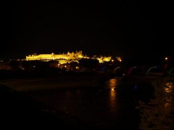 Keywords: castle building architecture carcassonne garrison town lighting night fortress wall pinnacle middle ages night photograph dark