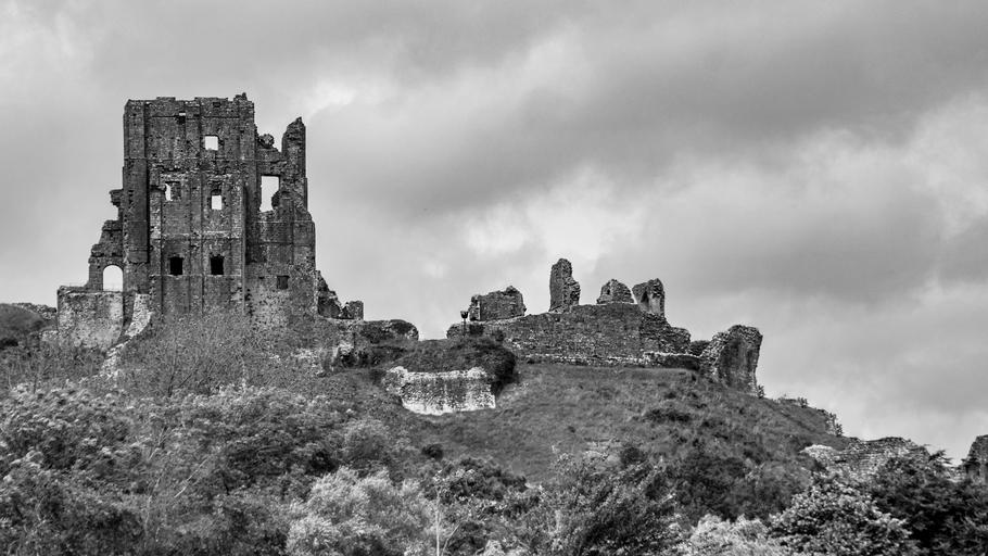 Keywords: castle corfe castle corfe dorset england old medieval english history uk architecture stone walls historic ruins black and white ian watts