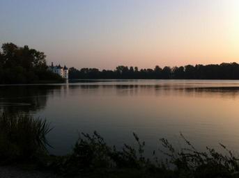 Keywords: castle lake dusk sunset mirroring glücksburg mecklenburg forest water building