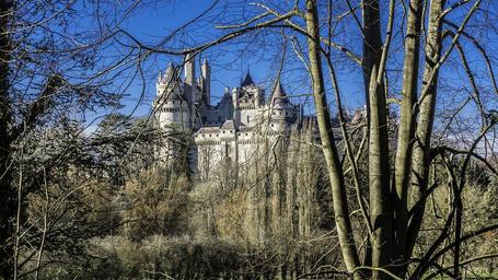Keywords: castle of pierrefonds medieval middle ages france heritage tourism old building trees culture history tower keep moat crypt art king royal lord park green clouds nature calm based landscape fortress cloudy sky stones forest sky blue