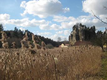 Keywords: castle rock ruins meadow autumn landscape dry heaven
