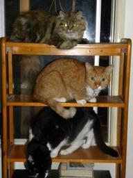 | Keywords: pets animals cats indoor cat pet animal We've set up an old set of shelves near our back window so our indoor cats can have a good view of the outside world, especially the many birds that visit the tree just near our back verandah. We've set up an old set of shelves near our back window so our indoor cats can have a good view of the outside world, especially the many birds that visit the tree just near our back verandah. | ||||