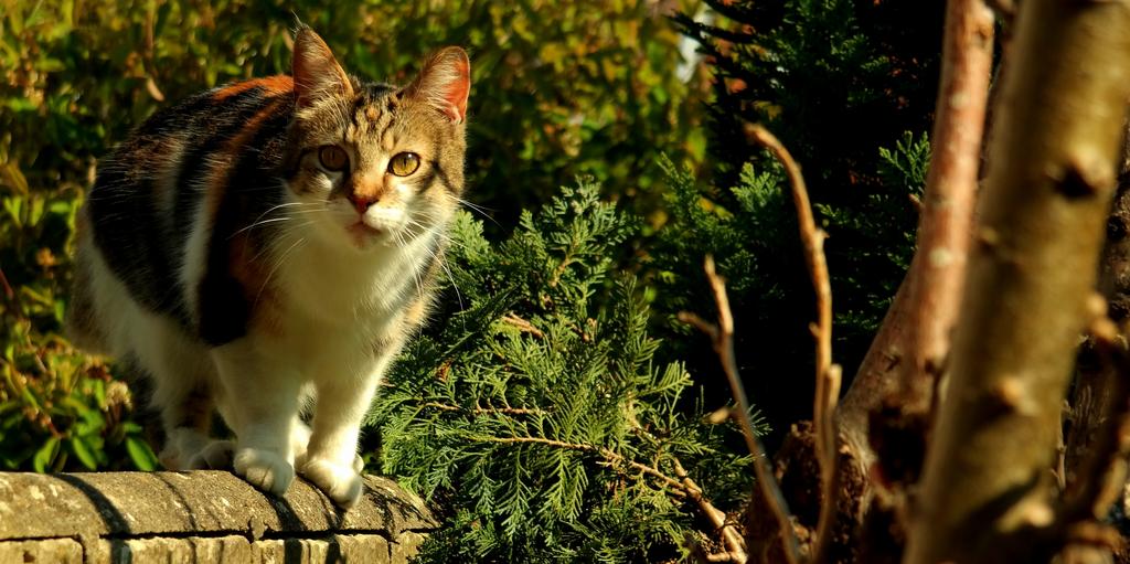 Keywords: cat animal pet young cat domestic cat mammal nature creature animal world wildlife photography garden wall tree