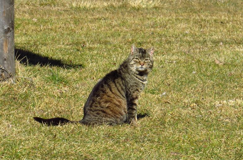 Keywords: cat animal pets grass on the land out