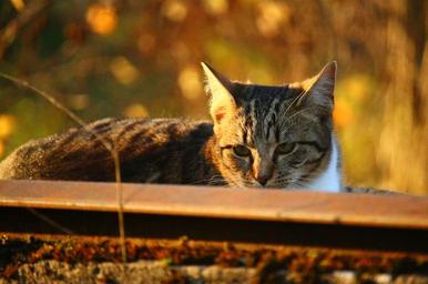 Keywords: cat autumn fall foliage evening light kitten fall color