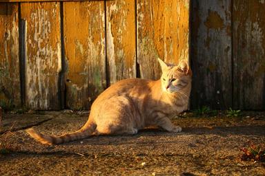 Keywords: cat autumn wood evening light kitten fall color