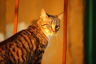 Keywords: cat autumn wood stainless mackerel evening light kitten fall color