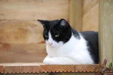 Keywords: cat black and white pet rest