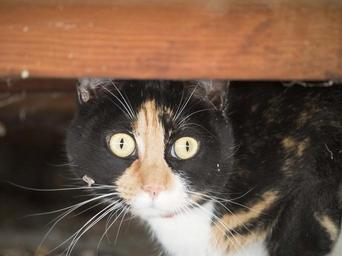 Keywords: cat calico feline cute resting indoors domestic animal pet fur portrait adorable looking sweet