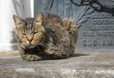 Keywords: cat cemetery peace sleeping sunny feline wild rest look