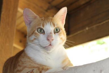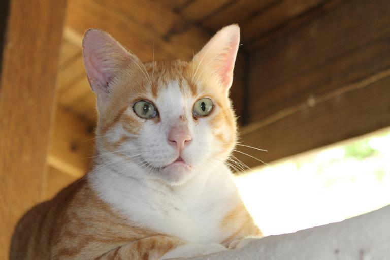 Keywords: cat color fur whiskers eyes green white red head animal cat face portrait pet cat's eyes drawing curious tiger cat mackerel cheeky pink nose