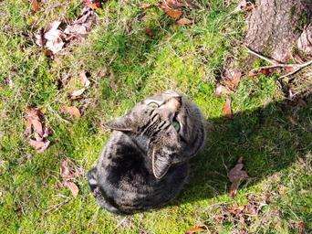 Keywords: cat considering tree lawn animal consider pet contemplation feline