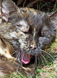 Keywords: cat domestic cat outdoor tired relaxed tortoise shell lazing around cozy