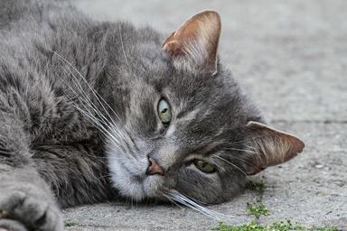 Keywords: cat domestic cat pet grey relaxed lying animal