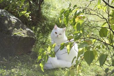 Keywords: cat domestic cat sweet dear persian cat breed cat white sit nature green shrubs tree rush grass felidae