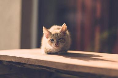 Keywords: cat eye injury one eye village illness vintage wooden outdoor animal pet cute young little unhappy small family domestic red fur portrait nature garden poor