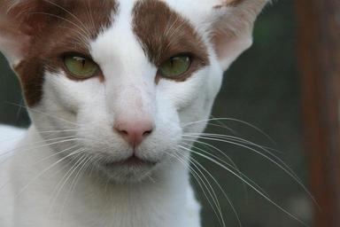 Keywords: cat eyes oriental shorthair fur charming dear animals beautiful carnivores cute fluffy stains mammal pet portrait thoroughbred domestic cat brown white white wildlife creature wildlife photography
