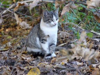 Keywords: cat fall leaves animal nature autumn tree outdoor seasonal
