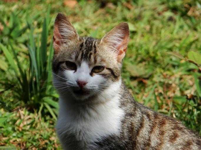 Keywords: cat feline animal kitten pet feline stopped cat face cat's eyes feline look lonely tuned