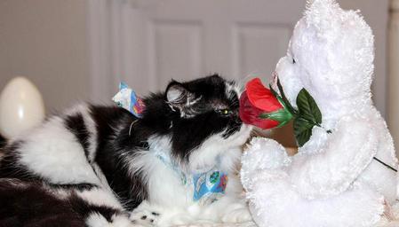 Keywords: cat feline himalayan persian smelling flower cute domestic animal young mammal fur purebred pet small white playful adorable portrait tabby fluffy fun black breed pedigreed