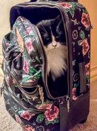 Keywords: cat feline tabby furry luggage animal cute domestic nature pets curiosity playful whisker small black cute cat fluffy mammal