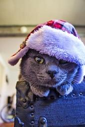 Keywords: cat hat feline pet kitty grey fur christmas
