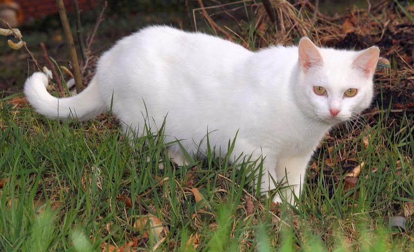 Keywords: cat hunting animal mieze domestic cat start attention animal world white noble fur head face close