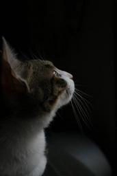 Keywords: cat in the dark out of curiosity pet animal i think profile curious