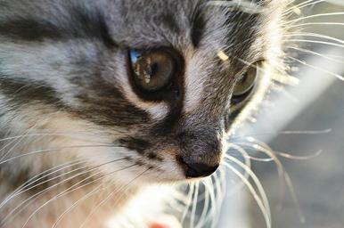 Keywords: cat kitten animals person eyes pets nose grey fur