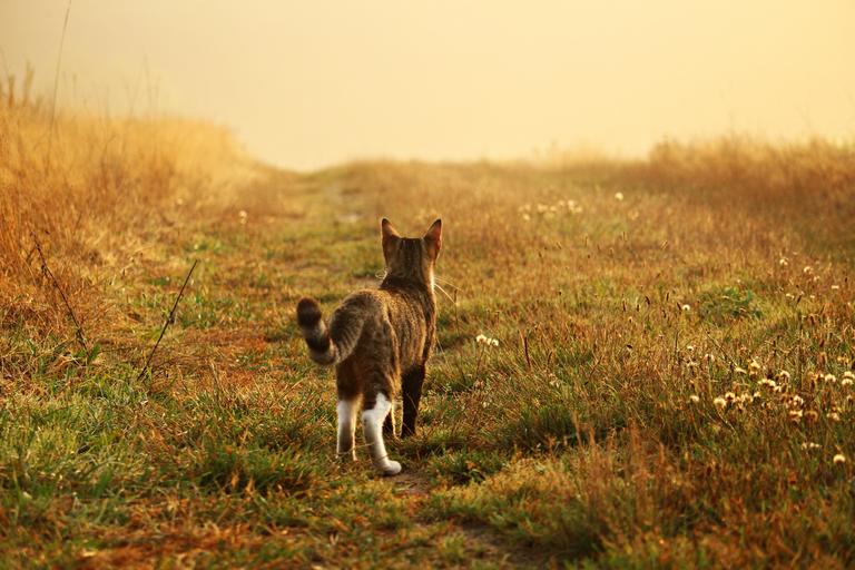 Keywords: cat kitten mieze mackerel tiger cat domestic cat grass autumn young cat